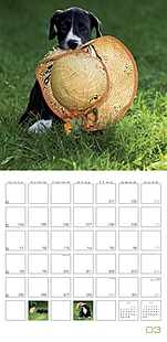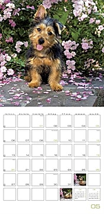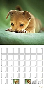 abwechslungsreichen Fotos fest. An der Wand misst der Broschurkalender