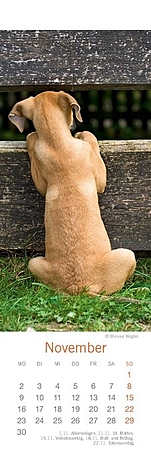 Ein weiterer Wegler-Kalender: Hundekinder, Posterkalender im Format 44 x 34 cm mit Bildgeschichten und Texten.