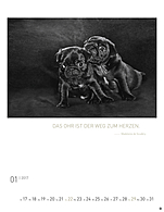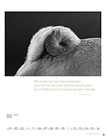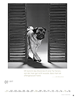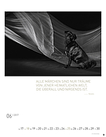 Halbmonatskalender im Format 34 x 44 cm mit 24 Schwarz-Weiß-Aufnahmen und literarischen Zitaten.