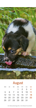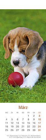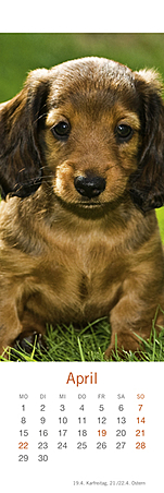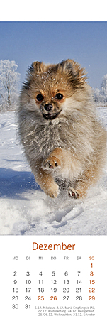 Lesezeichen & Kalender im Format 6 x 18 cmVerspielt, putzmunter und voller Lebensfreude, so hat die bekannte Fotografin Monika Wegler in ihren Aufnahmen das Wesen unserer vierbeinigen Freunde eingefangen. Freuen Sie sich zweimal: Zuerst an den schönen Motiven und dem übersichtlichen Kalendarium unserer kleinen Bestseller und dann an den dekorativen Lesezeichen!Ein weiterer Wegler-Kalender:Hundekinder, Posterkalender im Format 34 x 44 cm mit Bildgeschichten und Texten.