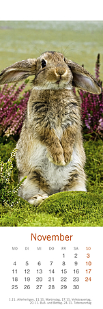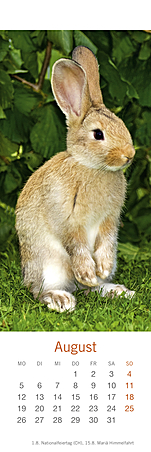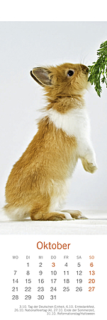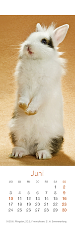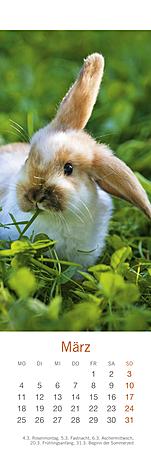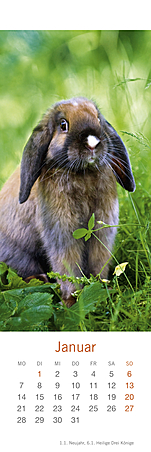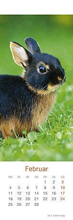 Lesezeichen & Kalender im Format 6 x 18 cmHerzig, putzmunter und voller Lebensfreude, so hat die bekannte Fotografin Monika Wegler in ihren Aufnahmen das Wesen unserer kleinen und großen Fellnasen eingefangen. Freuen Sie sich zweimal: zuerst an den schönen Motiven und dem übersichtlichen Kalendarium unserer kleinen Bestseller und dann an den dekorativen Lesezeichen! Weitere Wegler-Kalender: Kaninchenkinder, Posterkalender im Format 34 x 44 cm mit Bildgeschichten.Kaninchen, Postkartenkalender im Format 16 x 17 cm.