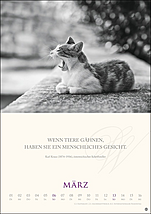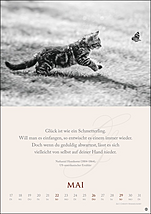 Fotografien von Katzen sind Kunstwerke, vor allem in schwarz-weiß und wenn sie von der bekannten Tierfotografin Monika Wegler aufgenommen wurden. 24 kunstvolle Fotografien, die die Eleganz und Schönheit der beliebten Haustiere vortrefflich einfangen, werden von feinsinnig ausgewählten literarischen Zitaten begleitet. Ein dekorativer, intellektueller Wandschmuck.