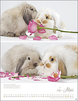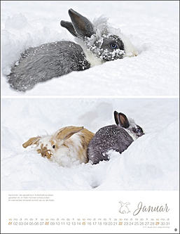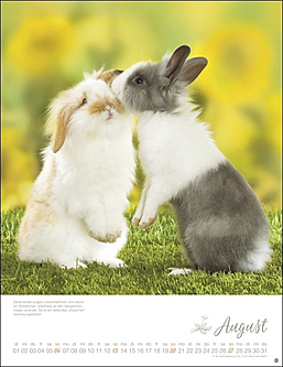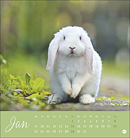 Vielseitiger Postkartenkalender mit niedlichen, putzmunteren Kaninchen, fotografiert von der renommierten Tierfotografin Monika Wegler. Zum Sammeln oder Verschicken, als Wandkalender und Tischaufsteller verwendbar. Aus stabilem Papier, mit rückseitigem Postkartenvordruck und Perforation.