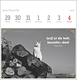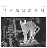 Dekorativer Postkartenkalender mit kunstvollen schwarz-weiß Fotografien, die die Eleganz und Schönheit der beliebten Haustiere vortrefflich einfangen. Begleitet werden die Fotos der bekannten Tierfotografin Monika Wegler von feinsinnig ausgewählten literarischen Zitaten auf jeder der 53 Postkarten. Zum Aufstellen, Heraustrennen, Sammeln und Verschicken. Ein dekorativer, intellektueller Tischschmuck.