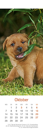 Lesezeichen & Kalender im Format 6 x 18 cmVerspielt, putzmunter und voller Lebensfreude, so hat die bekannte Fotografin Monika Wegler in ihren Aufnahmen das Wesen unserer vierbeinigen Freunde eingefangen. Freuen Sie sich zweimal: Zuerst an den schönen Motiven und dem übersichtlichen Kalendarium unserer kleinen Bestseller und dann an den dekorativen Lesezeichen!Ein weiterer Wegler-Kalender:Hundekinder, Posterkalender im Format 34 x 44 cm mit Bildgeschichten und Texten.