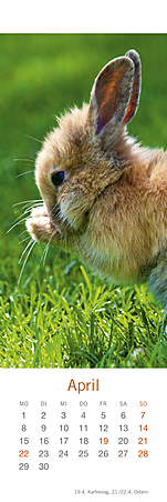 Lesezeichen & Kalender im Format 6 x 18 cmHerzig, putzmunter und voller Lebensfreude, so hat die bekannte Fotografin Monika Wegler in ihren Aufnahmen das Wesen unserer kleinen und großen Fellnasen eingefangen. Freuen Sie sich zweimal: zuerst an den schönen Motiven und dem übersichtlichen Kalendarium unserer kleinen Bestseller und dann an den dekorativen Lesezeichen! Weitere Wegler-Kalender: Kaninchenkinder, Posterkalender im Format 34 x 44 cm mit Bildgeschichten.Kaninchen, Postkartenkalender im Format 16 x 17 cm.