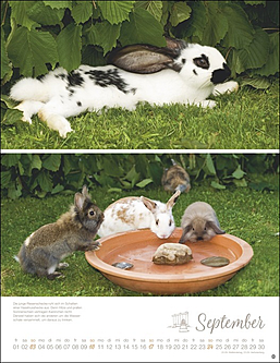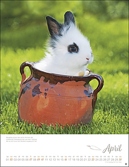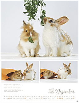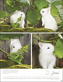 Vielseitiger Postkartenkalender mit niedlichen, putzmunteren Kaninchen, fotografiert von der renommierten Tierfotografin Monika Wegler. Zum Sammeln oder Verschicken, als Wandkalender und Tischaufsteller verwendbar. Aus stabilem Papier, mit rückseitigem Postkartenvordruck und Perforation.
